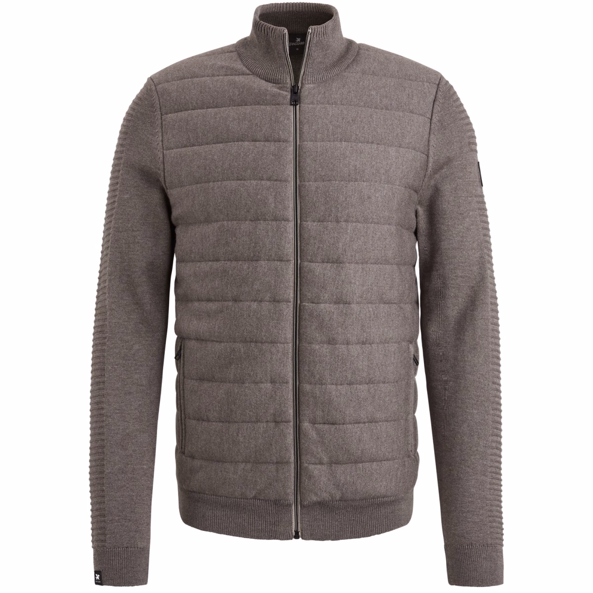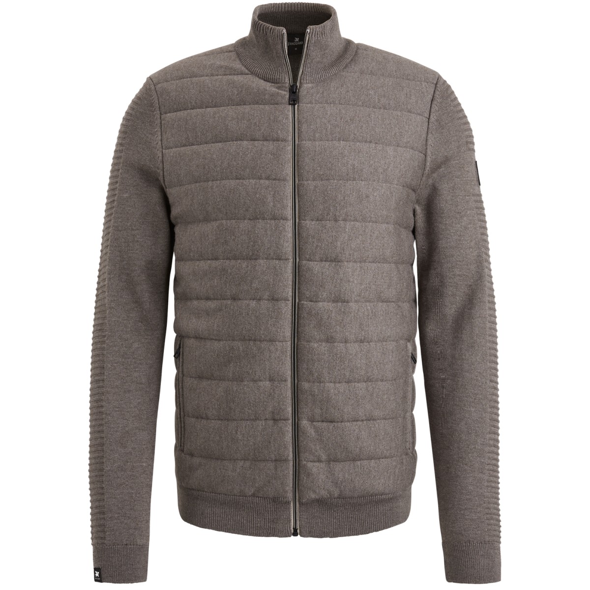 Looking for a versatile cardigan in your wardrobe? The knitted structure on the sleeves and front with pads and horizontal stitching gives this COOLE look. The vest has zipper, stand and two functional pockets. This layered piece is ideal for wearing inside and out. Vanguard iconic details complete this style.