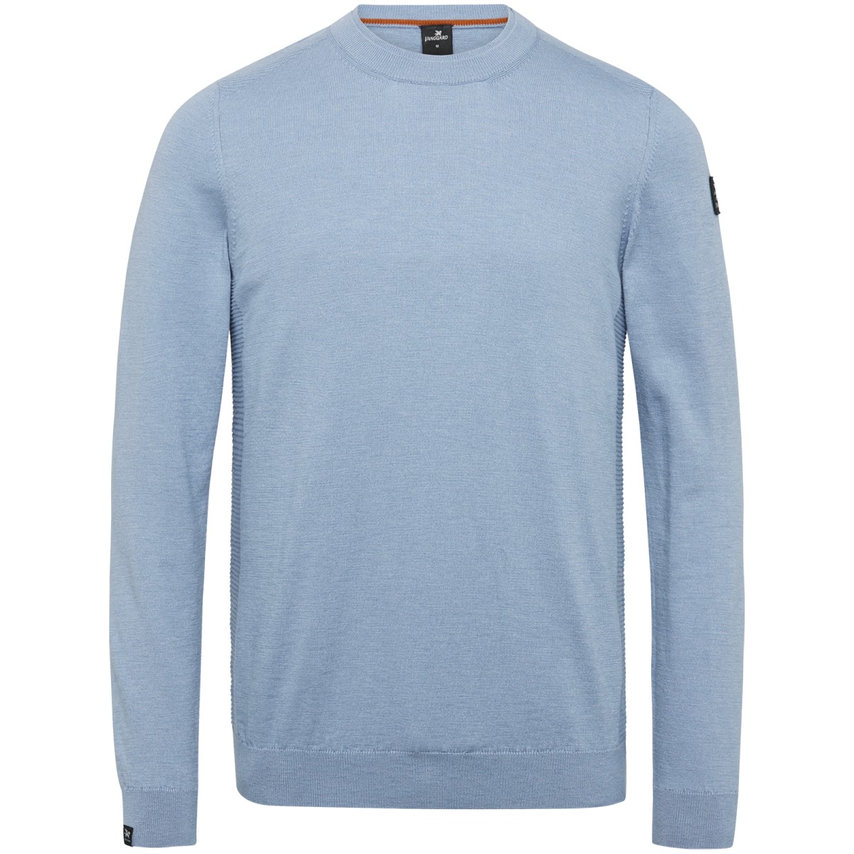 This delicate Vanguard crew neck sweater is made from cotton. The ribbed detail along the shoulders matches our iconic biker jackets. Timeless Vanguard details complete this style. Pair this sweater with our jeans or chinos for a cool but always stylish look.