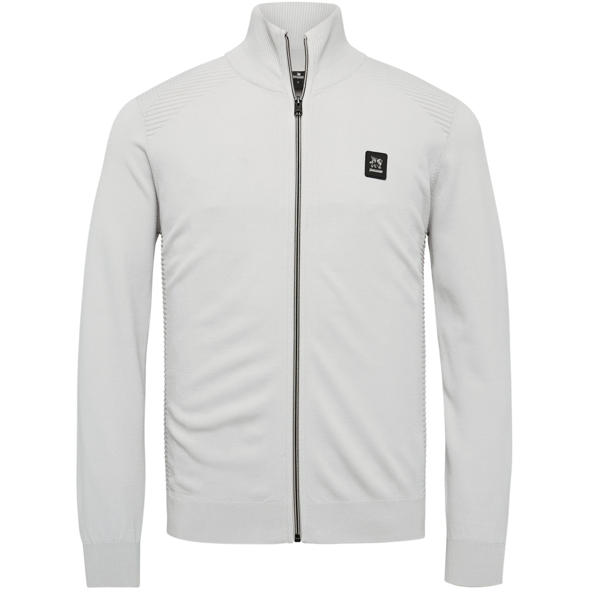 This Vanguard knit cardigan has a sporty and stylish look. Light, airy material with stretch makes this cardigan very comfortable to wear. The ribbed detail along the shoulder matches our iconic biker jackets. Timeless Vanguard details complete this style.